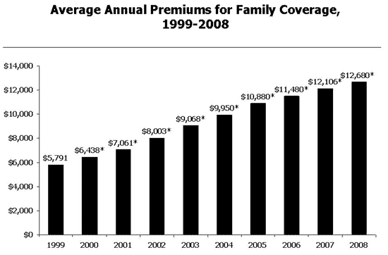Back in 2005, USA Today did a story on the average cost of a family healthcare policy topping $10,000 for the first time, http://www.usatoday.com/money/indust...h-policy_x.htm , and it's only gotten more expensive since then.